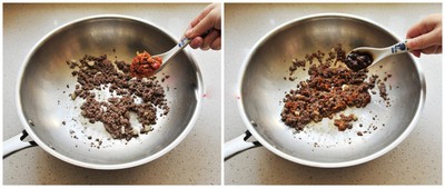 Nêm sốt XO, sa tế hoặc ớt xào vào thịt xào, đảo đều.