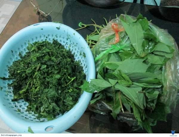 Lá mì (lá sắn) được người dân nơi đây trồng phổ biến. Loại khoai mì này là mì ta, với phần thân nhỏ và họ chỉ nhặt những đọt lá non để chế biến. Chính vì thế mà cây mì cứ thế sinh trưởng và thay lá mới.