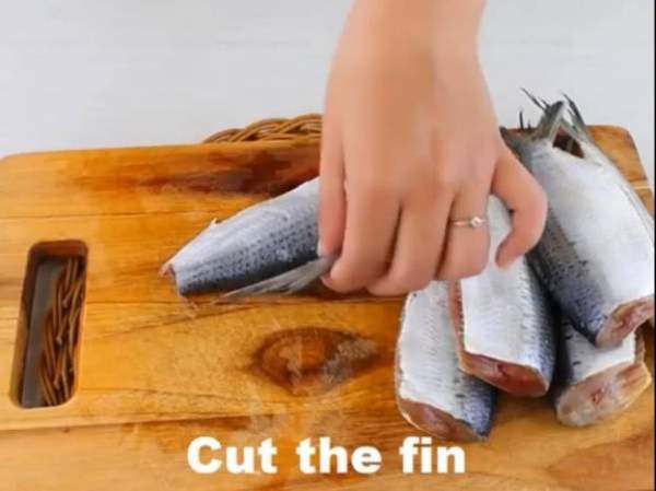 6 con cá nục sau khi đã sơ chế sạch thì bạn bỏ đầu và đuôi cá đi như hình hướng dẫn.