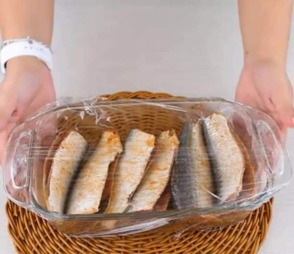 Rồi bọc lại bằng màng bọc thực phẩm và để cá nghỉ 30 phút cho cá ngấm gia vị.