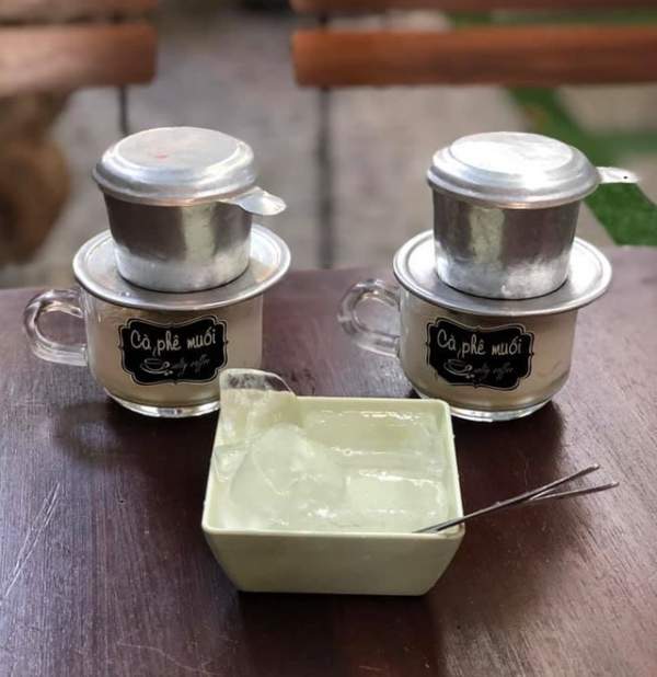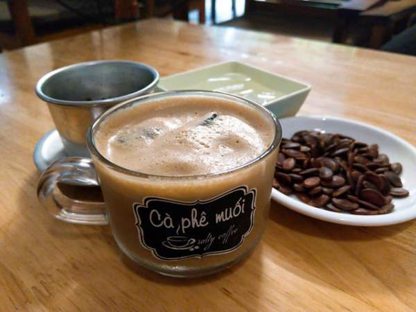 Mỗi cốc gồm sữa đặc bên dưới, thêm lớp sữa lên men với muối và trên cùng là phin cà phê nhôm truyền thống. Thực khách phải kiên nhẫn chờ cà phê nhỏ giọt xuống lớp kem muối trắng tinh. Xong xuôi, chỉ cần khuấy đều là có thể thưởng thức.