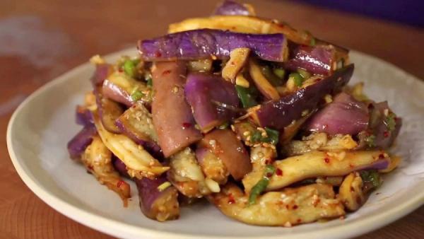Trộn cà tím đã hấp chín với đường, nước tương, tỏi băm, hành boa rô, dầu mè, ớt bột. Nêm nếm lại cho vừa ăn.