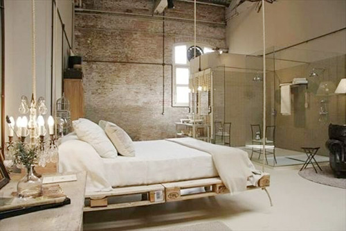 Điều thú vị khi sử dụng gỗ pallet là bạn có thể thỏa sức sáng tạo với độ cao của giường, tạo nơi để đồ, để đèn dưới gầm giường.