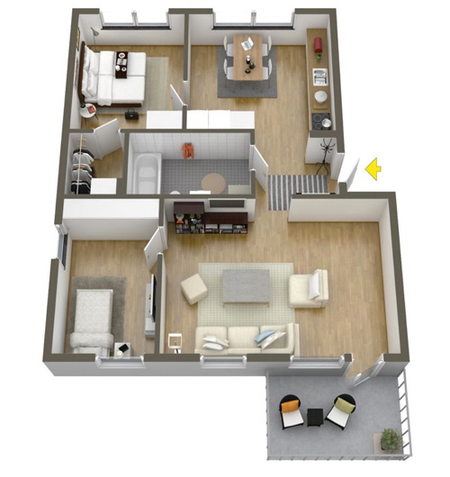 Các mẫu căn hộ nhỏ có 2 phòng ngủ