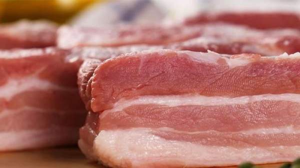 Thịt ba chỉ tươi ngon có màu đỏ nhạt hoặc hồng tươi, bóng nhẹ và lớp mỡ xen giữa có màu trắng sáng, nhìn căng và chắc.
