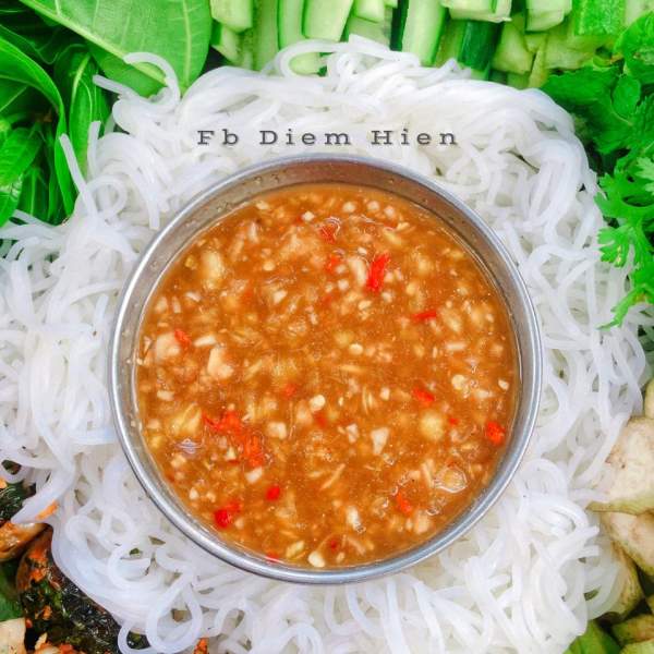 Mắm nêm: 3 thìa cà phê mắm nêm(mua loại mắm pha sẵn), 2 thìa cà phê đường, 2 thìa cà phê nước cốt chanh khuấy đều. Thêm 1/4 trái khóm băm nhuyễn, tỏi và ớt băm.