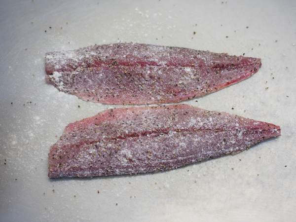 Rắc một ít bột mì lên cá thu.