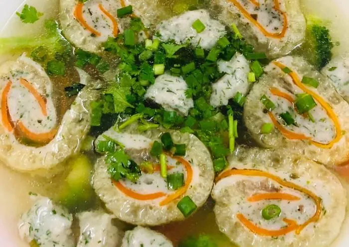 Xếp bóng thả cá vào tô canh và hành ngò thái nhỏ. Sau đó rưới nước dùng lên tô. Canh bóng cuộn chả cá thác lác ngon sẽ có vị ngọt thanh, mùi thơm và vị đậm đà của các nguyên liệu hòa quyện vào nhau. Món canh này chắc chắn sẽ khiến gia đình bạn phải tấm tắc khen ngon đấy.