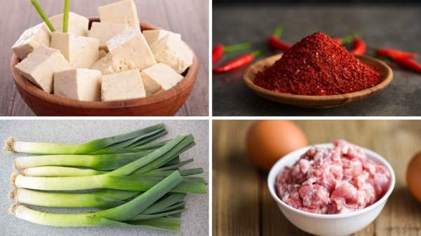 Nguyên liệu làm món đậu hũ hầm cay Hàn Quốc