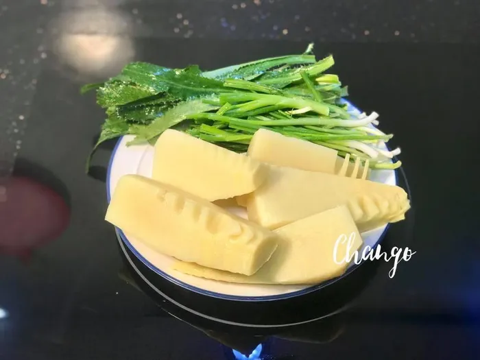 Bước 2. Sơ chế chuẩn bị măng và rau, bún