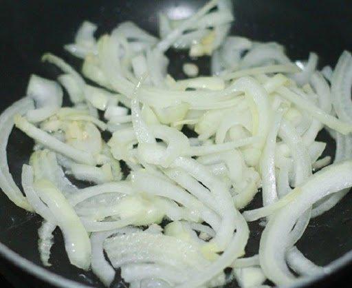 - Làm nóng chảo ở lửa vừa, cho một ít dầu ăn vào, phi thơm tỏi, cho hành tây vào xào nhanh trong khoảng 1-2 phút rồi cho các loại rau còn lại vào xào.
