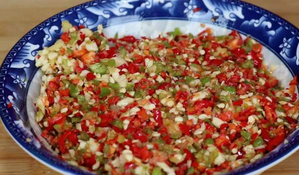 Nguyên liệu: ½ kg ớt xanh, 1 kg ớt hiểm, 1 củ gừng to, 10 nhánh tỏi, 30 gam muối, 30 gam đường, 20 gam rượu trắng, một nắm nhỏ hạt tiêu, 3 ~ 5 bông hoa hồi, 3 ~ 5 lá nguyệt quế, nửa củ hành tây, thêm một chút dầu ăn.