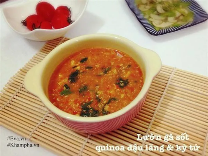 Lườn gà sốt quinoa, đậu lăng vàkỳ tử