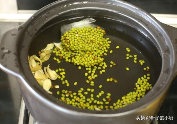 Cho một lượng nước thích hợp vào nồi, cho đậu xanh đang đông đá vào (giống với một viên đá đậu xanh), đun trên lửa lớn cho sôi rồi chuyển sang lửa vừa.