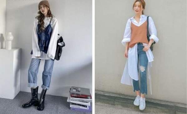 Công thức diện sơ mi đẹp chuẩn như gái Hàn bao gồm sơ mi, quần shorts và boots cao. Thêm vào đó, để tăng độ tương phản cho set đồ, bạn nên cho phần phía trên sáng màu và phần boots có tông trầm hơn như nâu, đen... hoặc ngược lại.