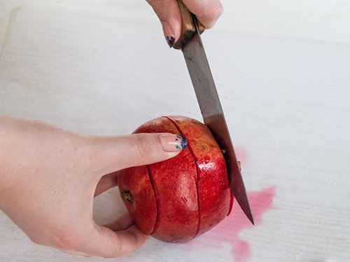 Cắt bỏ phần vỏ lựu vừa rạch.