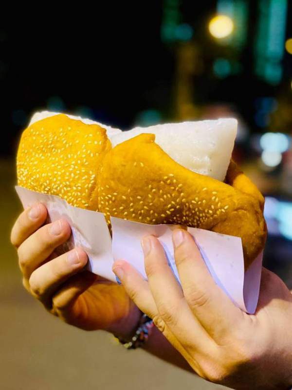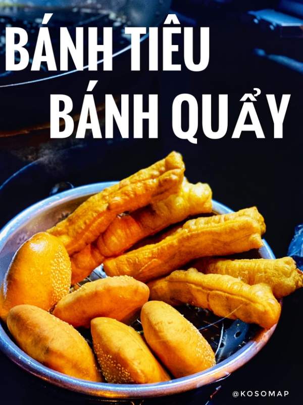 Ngoài bánh tiêu, ở đây còn có bánh quẩy và bánh bò. Bạn có thể mua món bánh tiêu kẹp bánh bò để ăn thử, sự kết hợp này cũng khá lạ miệng, không khéo ăn 1 lần là "nghiện" luôn đó.