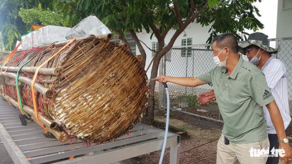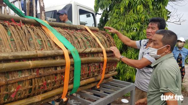 Theo ông Việt, cặp bánh tét này có trọng lượng hơn 3,6 tấn, mỗi đòn dài 3,7m, do một doanh nghiệp tại TP Cần Thơ thực hiện để dâng cúng Bà.