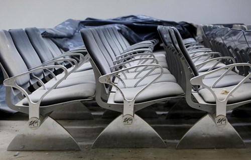 Sân bay ma triệu đô Jaisalmer nằm trên một thành phố sa mạc thuộc bang Rajasthan ở phía tây bắc Ấn Độ đã được hoàn thành cách đây 2 năm rưỡi với tổng số vốn đầu tư lên tới 17 triệu USD nhưng cuối cùng lại bị bỏ hoang. Trong ảnh là những dãy ghế trong một phòng đợi rất rộng bị bám đầy bụi bặm