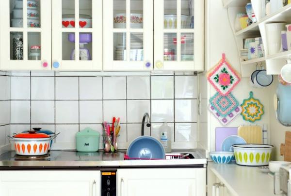 Bên cạnh nơi ăn uống là góc nhỏ dành cho công việc nấu nướng hàng ngày. Mới nhìn, mọi người sẽ nghĩ căn bếp khá lộn xộn với những kích cỡ nội thất, đồ gia dụng, đồ trang trí cũng như màu sắc không thống nhất, không ăn nhập với nhau.