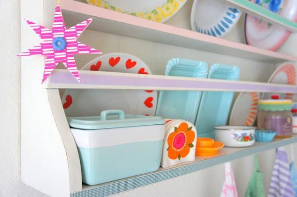 Những họa tiết hoa văn tươi tắn như xanh da trời, vàng, cam, xanh lá, tím nhạt... đều được gia chủ tận dụng tối đa để mang đến nét vui tươi, rộn rã cho khoảng diện tích này.