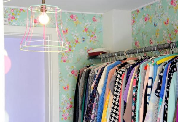 Căn phòng thay đồ được trang trí khá đơn giản với những họa tiết dán tường trẻ trung.
