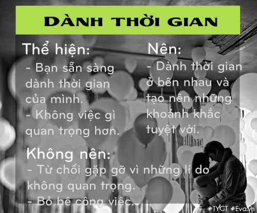 4. Một tình yêu bền lâu được tạo lập từ chính thói quen trong thế giới của hai người. Niềm vui thực sự chính là khoảng khắc quý báu mà hai người dành cho nhau. Thậm chí ngay khi hai người ngồi hàng tiếng đồng hồ bên nhau trong không khí im lặng, đọc sách hoặc suy ngẫm điều gì đó mà không cần cất lên tiếng nói.