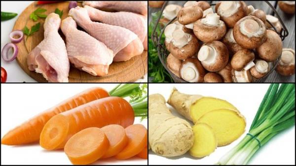 Nguyên liệu nấu canh gà nấm hương cà rốt