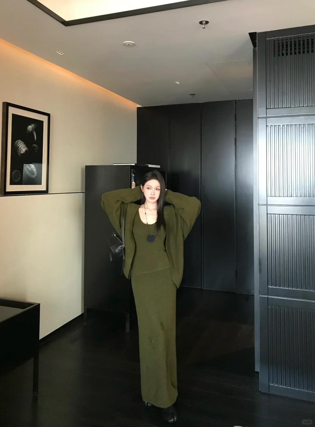 Chị em trông vừa quyến rũ vừa ấm áp với outfit dệt kim xanh ô liu cực bắt mắt.
