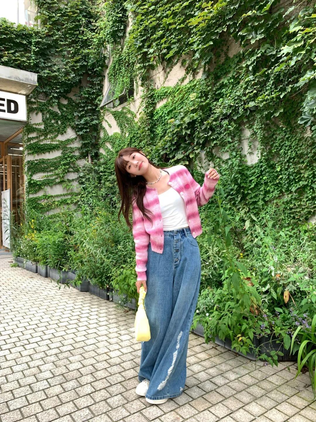Hãy thử kết hợp áo len hồng cùng quần jeans đậm để thấy sự nổi bật nhưng vẫn có màu sắc riêng.