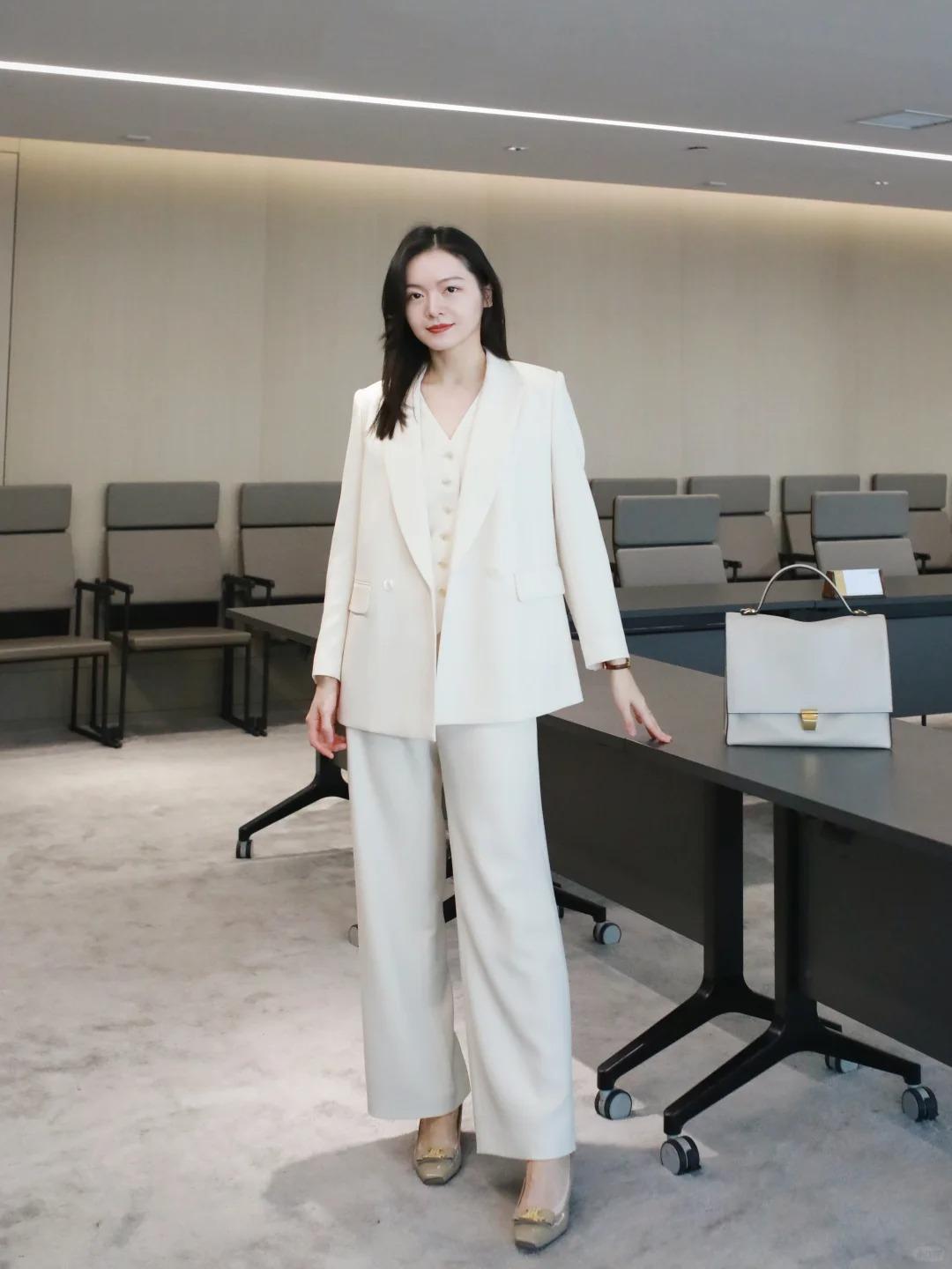 Blazer kết hợp cùng quần tây suông luôn mang đến cảm giác thanh lịch và chuyên nghiệp.