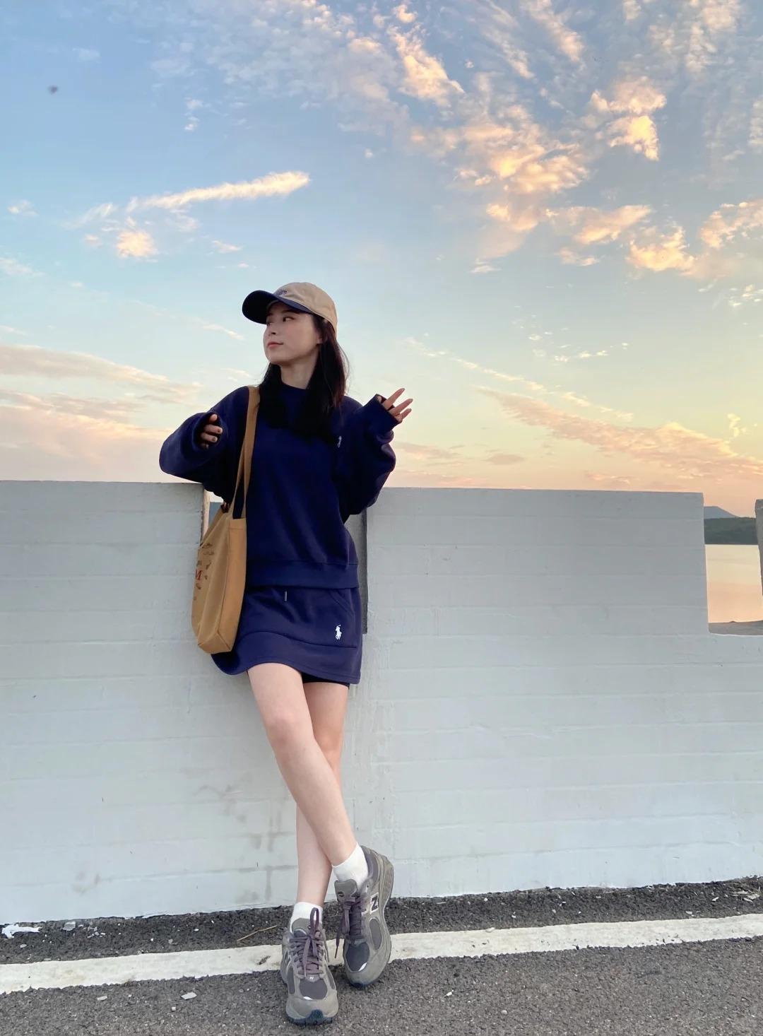 Áo hoodie mix cùng chân váy và giày thể thao giúp nàng trông tươi tắn và trẻ trung.