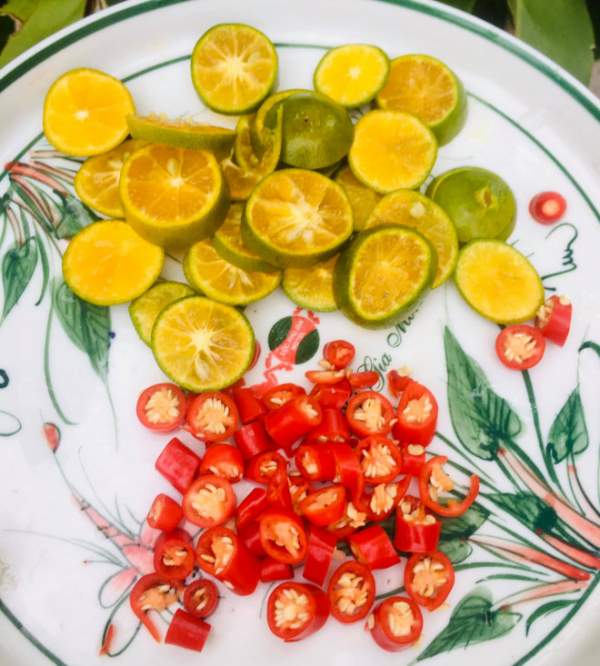 Quất, ớt thái nhỏ