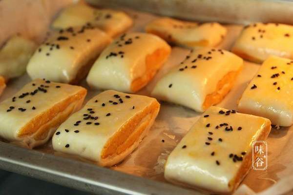 Lót giấy vào khay nướng hoặc dùng nồi chiên không dầu, xếp bánh khoai lang vào, phết lòng đỏ trứng và rắc một ít mè trang trí.