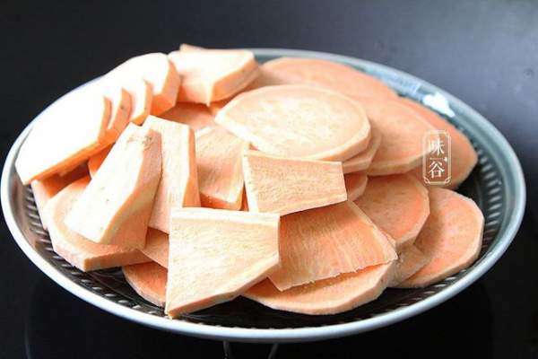 Khoai lang gọt vỏ, cát lát, cho vào nồi hấp cách thủy 15 phút.