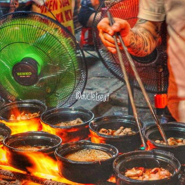 Cứ tầm 7 giờ tối thì những lò than được nung lên để nấu cho những nồi cháo ếch thơm ngon. Tuy chỉ bán ếch khi kiểu Singapore kèm cháo trắng truyền thống nhưng bởi hương vị thơm ngon nên quán cháo luôn đông đúc cả một góc đường.