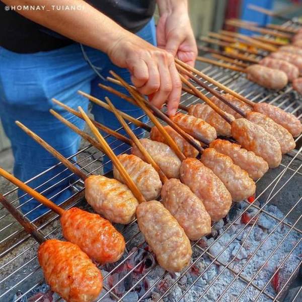 Nem bò nướng sả là hương vị thu hút tín đồ ẩm thực bậc nhất ở khu chợ này. Bạn sẽ cảm nhận vị ngọt của thịt bò tan ngay trong miệng, hương sả nồng nàn kích thích vị giác.