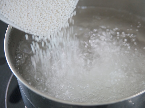 Đun sôi một nồi nước và cho bột báng vào khuấy liên tục cho đến khi bột báng bên ngoài trong suốt, bên trong chỉ còn một điểm trắng. Giảm nhiệt, đậy vung, đun nhỏ lửa cho tới khi toàn bộ bột báng trong suốt hoàn toàn.