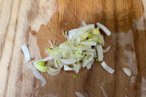 Gốc hành hoa rửa sạch rồi thái nhỏ.