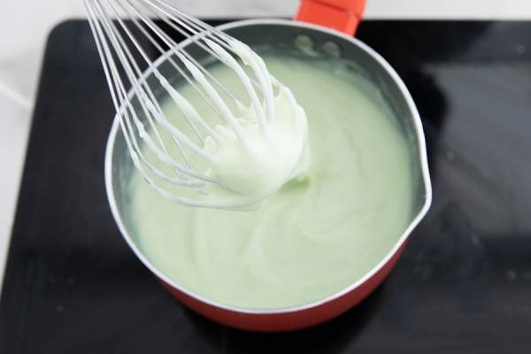 Đun ở lửa vừa và nhỏ, khuấy liên tục cho đến khi bánh sữa dưa chuột đặc sệt lại.
