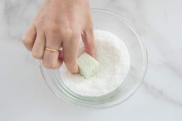 Lăn bánh qua cơm dừa sấy khô là xong.