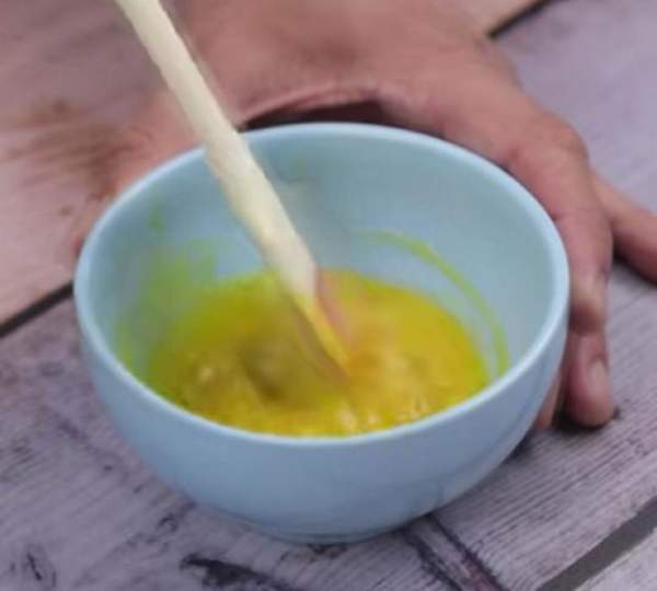 Phần lòng đỏ trứng gà bạn cho thêm một chút muối và một chút hạt tiêu rồi khuấy đều, để sang 1 bên