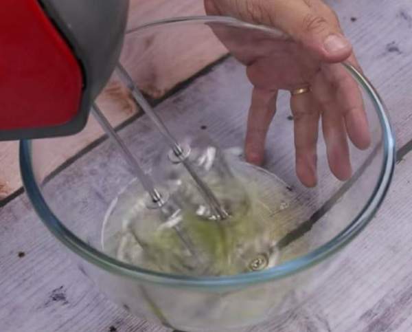 Phần lòng trắng trứng gà bạn dùng máy đánh trứng...
