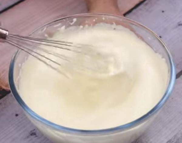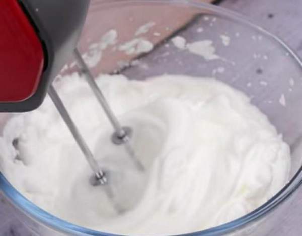 ... đánh lòng trắng trứng gà lên cho thật tơi xốp thành lớp kem như hình hướng dẫn