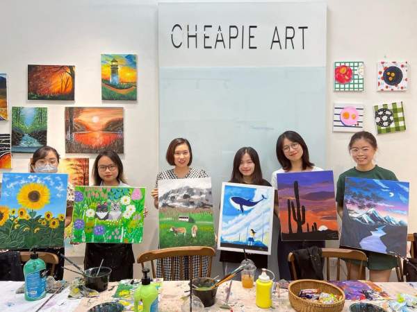 Đến đây, bạn sẽ được hướng dẫn từ những điều căn bản nhất như pha màu, sử dụng cọ đến việc tìm hiểu thêm về loại màu Acrylic và thỏa sức sáng tạo cùng bộ môn nghệ thuật này. Với đội ngũ giáo viên tận tình, chu đáo và có nhiều năm kinh nghiệm, Cheapie Art sẽ giúp bạn tự tin hoàn thiện bức tranh của mình. Bất kỳ đối tượng nào cũng có thể tham gia workshop vẽ tranh của Cheapie Coffee & Art chứ không riêng gì dân văn phòng, chẳng hạn như sinh viên hoặc trẻ em. Ngoài vẽ tranh, Cheapie Coffee & Art còn có nhiều hoạt động thú vị khác như tô tượng, bắn thảm, làm túi... cho bạn tha hồ trải nghiệm.