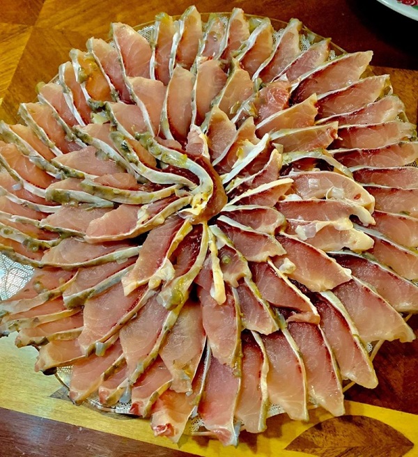 - Dùng rượu gừng rửa lại thịt cá để khử mùi tanh. Thái thành lát to bản, mỏng.