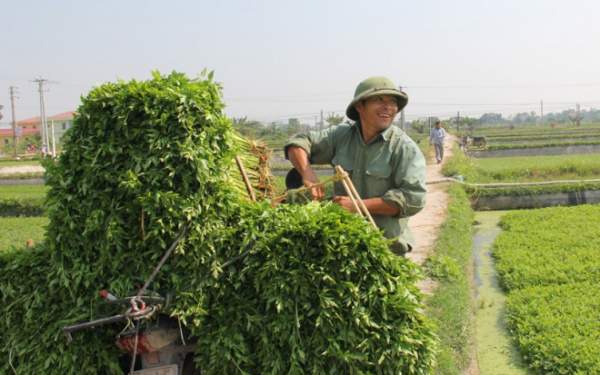 - Rau cần nước được trồng ở các ao nông cây cao, thân trắng.