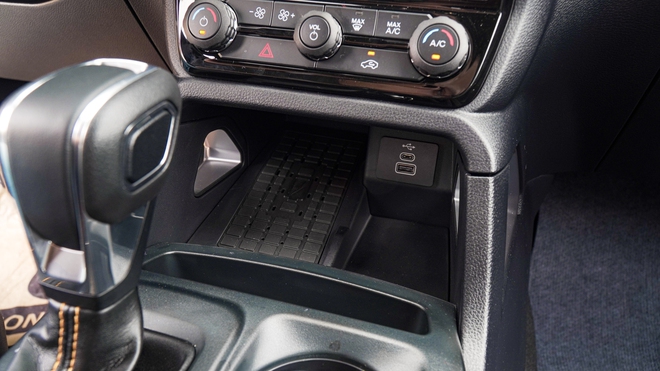 Sạc không dây, giá để cốc nước được bố trí ngay cửa gió điều hòa, cổng sạc cạnh gương chiếu hậu trung tâm để cấp điện cho camera hành trình là những cải tiến nhỏ nhưng được đánh giá thực dụng với khách hàng của Ranger.
