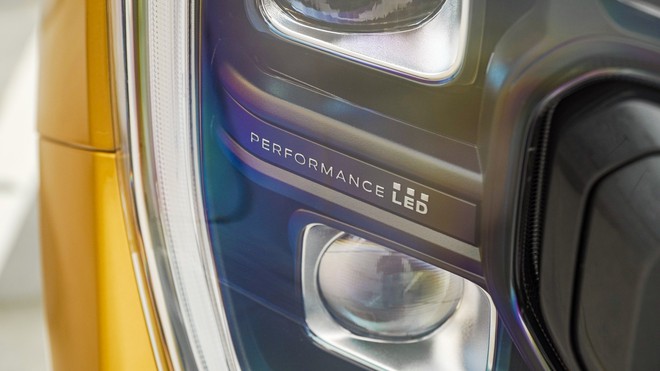 Đây là lần đầu tiên Ford Ranger Wildtrak được trang bị đèn pha LED ma trận, có khả năng tự động cân bằng góc chiếu sáng và điều chỉnh cường độ sáng. Ở đuôi xe, điểm đáng chú ý nhất là bậc lên xuống thùng xe ở cạnh hốc bánh sau, giúp ích cho người dùng dễ dàng tiếp cận thùng hàng.