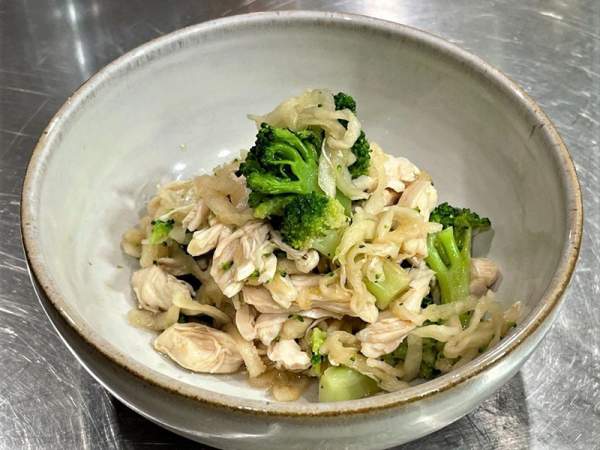 Kết cấu giòn dai của củ cải khô sẽ khiến món ức gà và bông cải xanh quen thuộc không còn nhạt nhẽo nữa. Khi trộn 3 nguyên liệu này lại với nhau, một món ăn mới ra đời, cực kỳ ngon miệng.